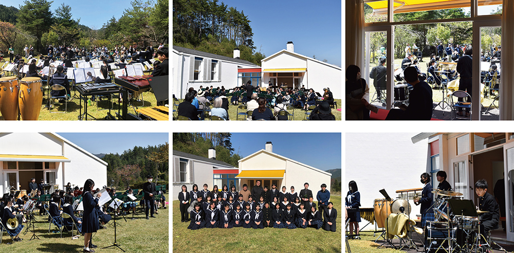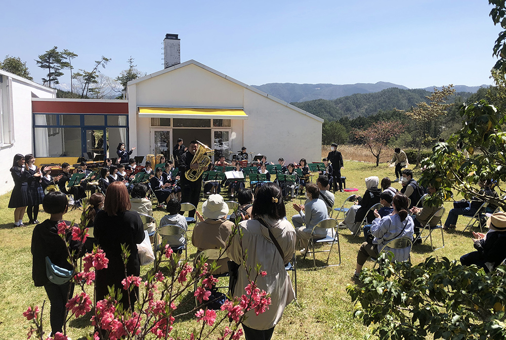 当日は斐太高等学校吹奏学部の皆さんと飛騨高山高等学校吹奏楽部の皆さんとのジョイントコンサートが、フィン・ユール邸の中庭で開催。好天にも恵まれ、ご来場の皆さまは大自然に響き渡る管楽器の音色を聞きながら、素敵な休日を過ごされました。