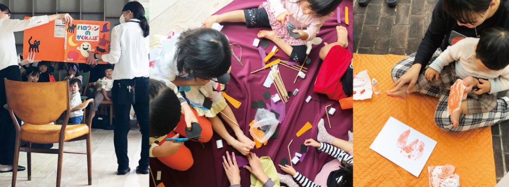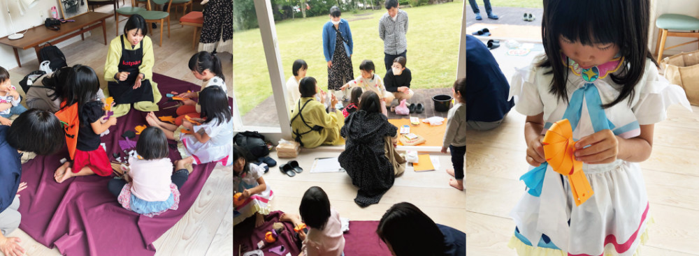 10月14日土曜日午後、フィン・ユール邸にて、NPO主催の第9回童話の会を開催しました。今回も高山市図書館「喚章館」様のご協力を得て、ハロウィンにちなんだ童話の読み聞かせや、エプロンシアターが行われました。またキットパスアート教室様によリ、大きなお子様は簡単な工作(オーナメントづくり)、小さなお子様は足型アートとして足型でパンプキンの絵が描かれました。