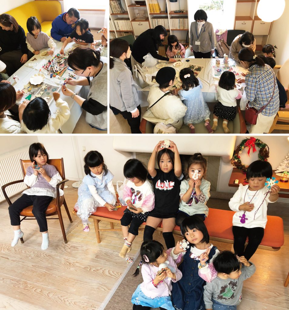 高山市図書館「煥章館」様のご協力を得て、クリスマスにちなんだ童話の読み聞かせ&手袋シアターを行いました。工作教室では、クリスマスのためのオーナメント作り。