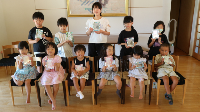 15時過ぎ、子供たちは自分の完成した写真フレームを手に記念撮影をしました。