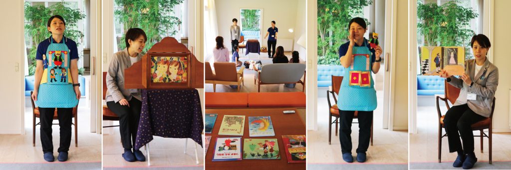 お遊戯を挟みながら、紙芝居形式や、エプロンシアター形式のお話に皆さん大喜び。