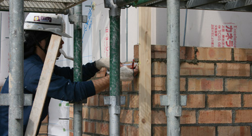 長い検討期間を終え、いよいよ作業開始。決定したルールに従って、職人の方々の手作業で一段一段レンガが積み上がっていきます。