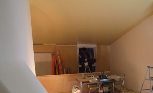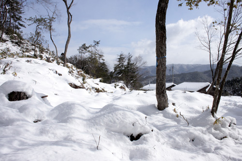 曇りや雪の日が多く、日照時間がとっても短い高山の冬ですが、本日は気持ちいい快晴。建設予定地も積もっていた雪で白く輝き、フィン・ユール邸の壁と同色です。