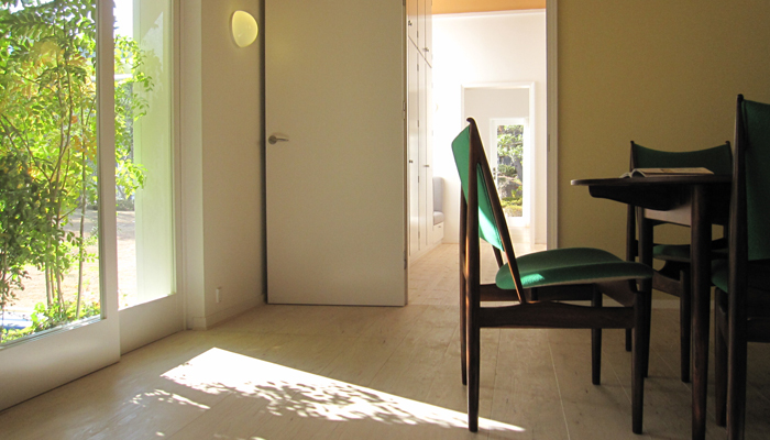フィン・ユール邸の調査研究をするにつれ、内外空間の連続性については、床までの大きな開口部、自然光の取り込み方、地面に近い床高など日本の伝統的住宅や町屋に見られる建築様式に影響を受けていたと考えられます。
