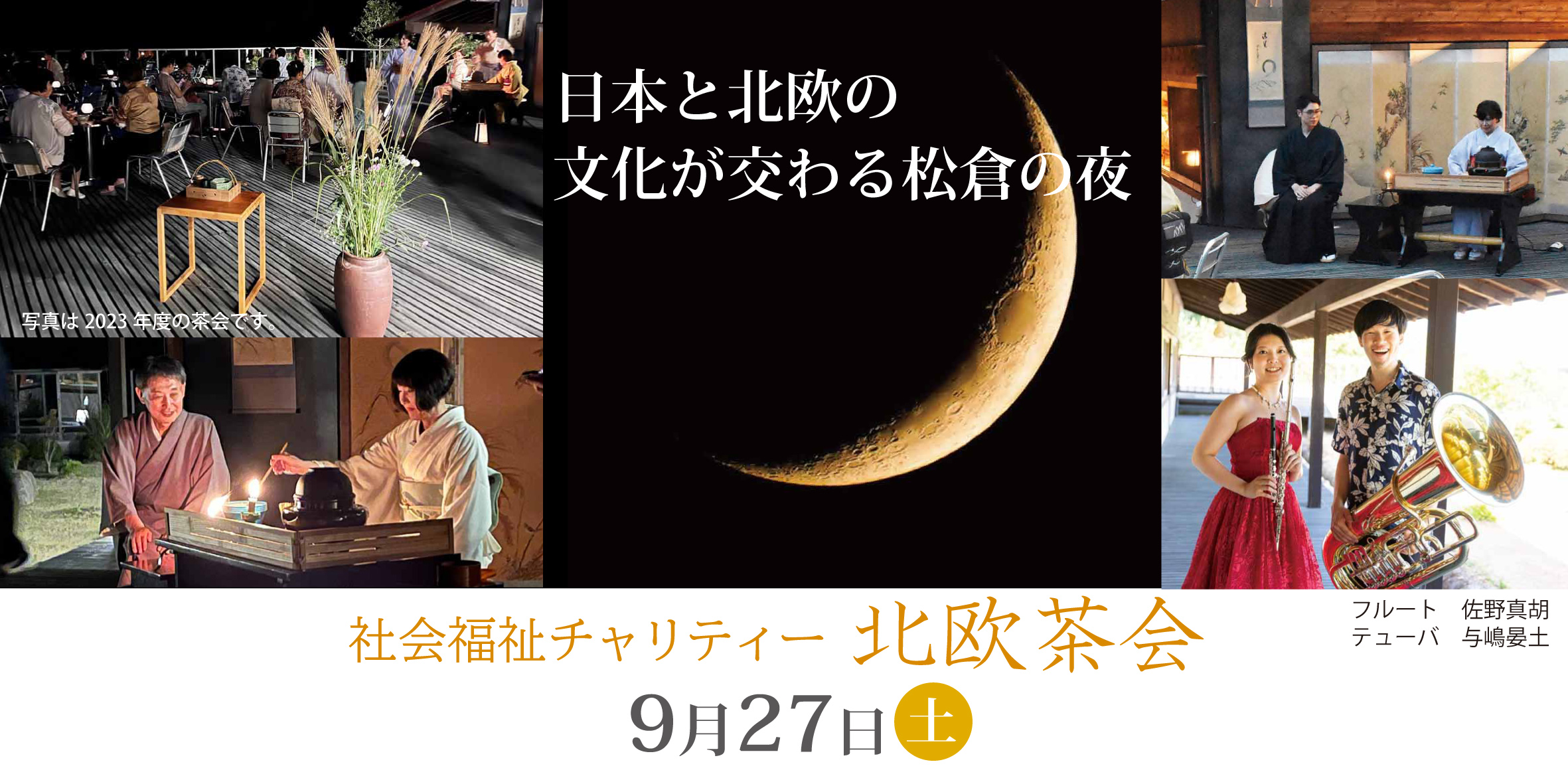 また茶会のひとときには飛騨高山出身の若手音楽家によるフルートとテューバの演奏が月光のもと行われますので、より一層心豊かなお時間をお過ごしください