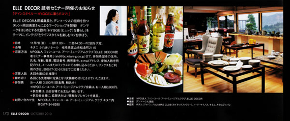 ◆応募方法: NPO法人フィン・ユール アート・ミュージアムクラブ「ELLE DECOR読者セミナー事務局」
