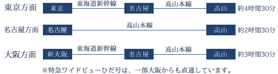 名神高速道路(一宮西.IC)- 東海北陸自動車道(高山西.IC)- R158 – 高山